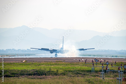 着陸するジェット旅客機