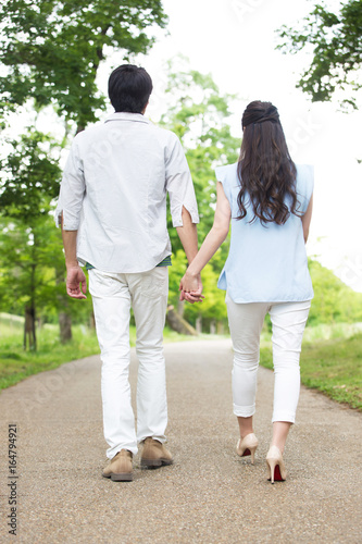 並んで歩く夫婦