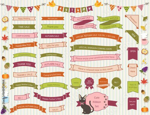 お洒落かわいい、秋色のリボンセット ( りぼん フレーム 見出し タイトル セール 秋 )