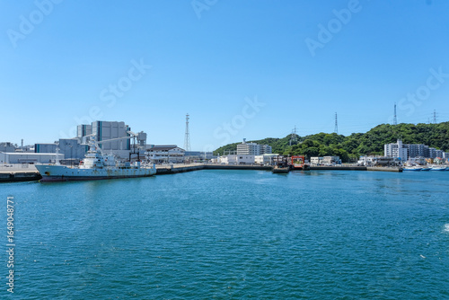 海上から見る久里浜港のフェリー桟橋