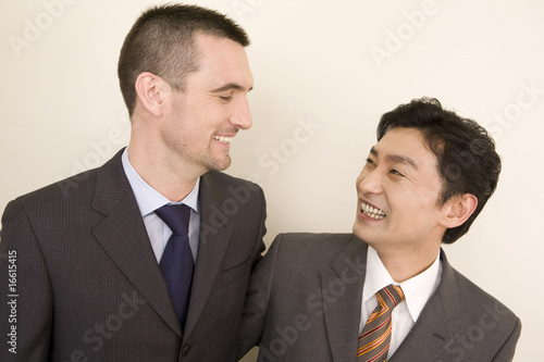 会話する日本人ビジネスマンとアメリカ人ビジネスマン