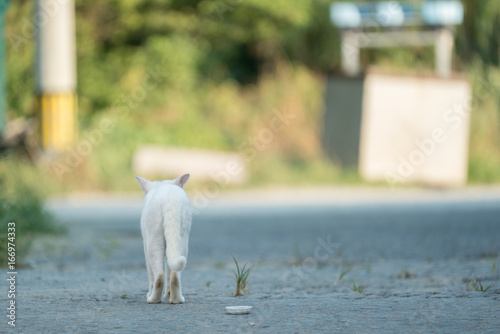 歩く白猫の後ろ姿