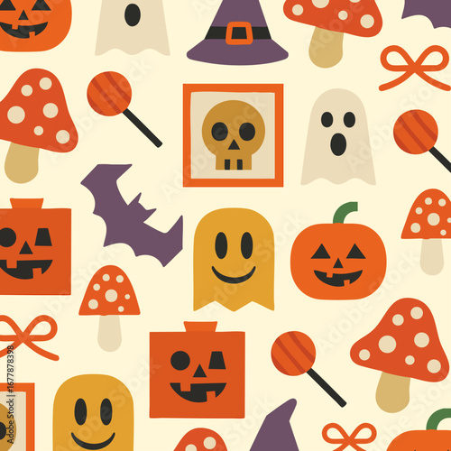 호박과 유령, 해골과 마녀모자 패턴, 즐거운 할로윈 분위기의 장식용 아트 디자인