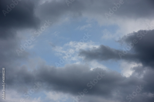 青空と雲「空想・雲のモンスターたち(雲間の向こうに白いドラゴン、その手前には、黒いドラゴン・怪鳥・不死鳥などのイメージ)」明暗を分ける、表裏一体、競争する、ライバル、なぜか気があう、性格違いなどのイメージ