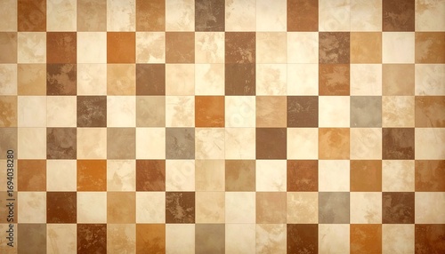 갈색과 크림색 빈티지 톤의 레트로 체크 무늬 벽지