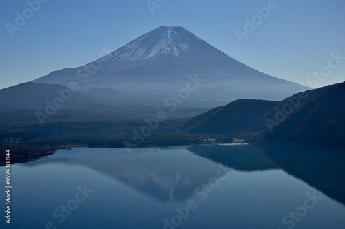 天子山地の中之倉峠の展望台より 富士山と静観な本栖湖に映る逆さ富士
