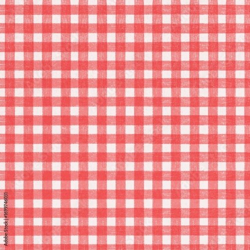 色鉛筆の優しいタッチで描いた赤いギンガムチェックの背景イラスト