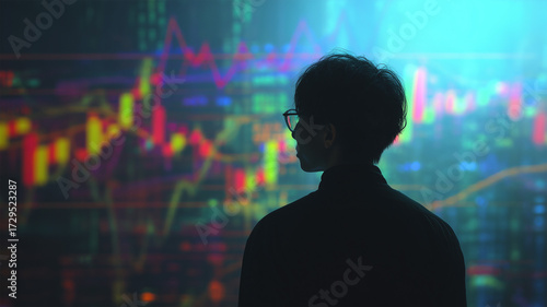 男性が金融チャートを見つめる後ろ姿