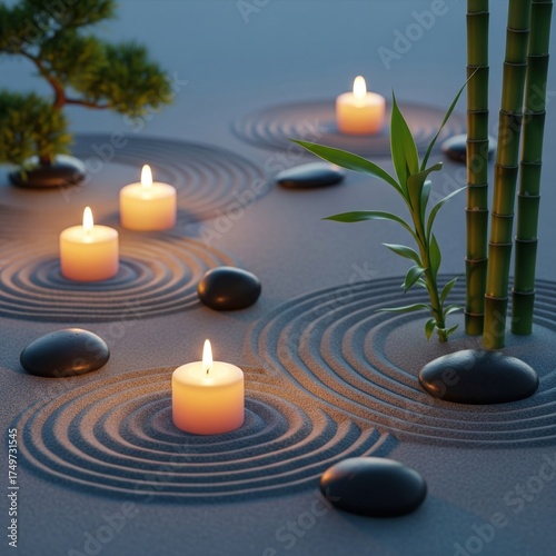 ろうそくの灯りと禅の庭