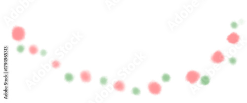 ピンクと緑色の滲んだかわいいドットあしらい素材