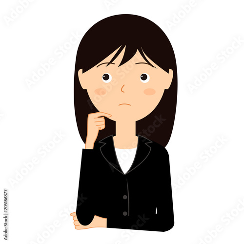 考え事をしているビジネススーツの若い女性のイラスト