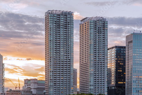 夕暮れの東京の街