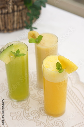 パイナップル・メロン・バナナのスムージー