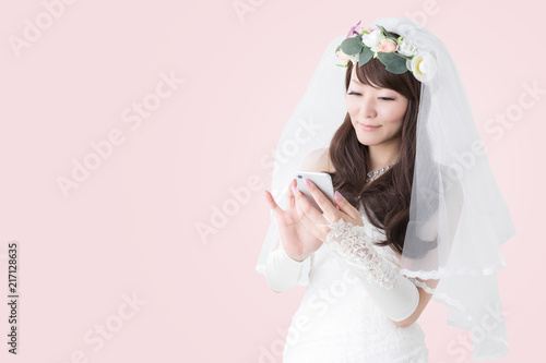 スマホを操作する花嫁
