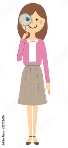 若い女性 ママ 虫眼鏡