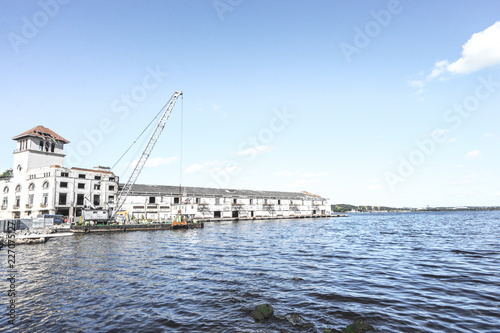 キューバ・ハバナの海辺の建物と青い海