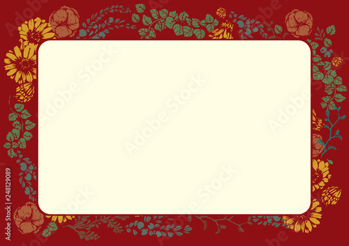 レトロな花と植物のフレーム 背景素材 ベクター 赤系
