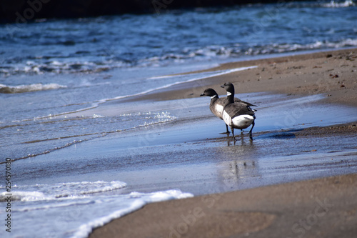 波打ち際を歩く二羽のコクガン