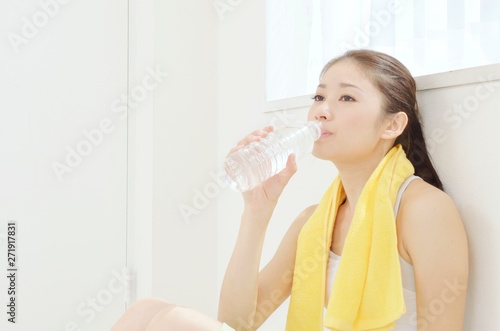 水を飲む若い女性