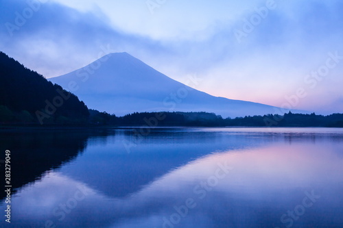 夜明けの富士山、静岡県富士宮市田貫湖にて