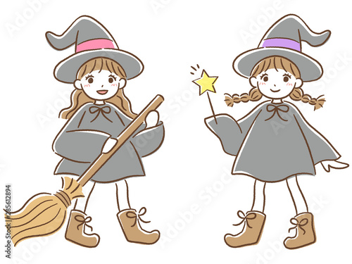魔女の仮装の女の子 手描き風ハロウィンイラスト