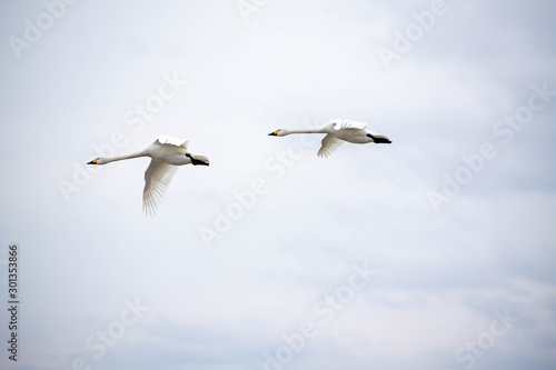 空を飛ぶハクチョウ