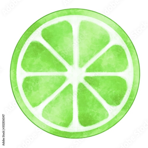 グリーンレモン ライム 輪切り 水彩風イラスト素材