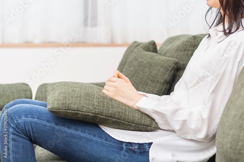 リビングのソファーに座る女性