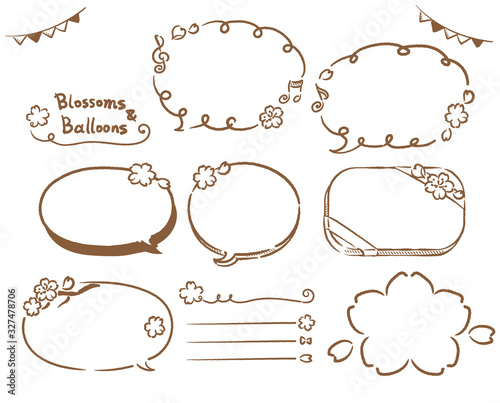 桜の花をテーマにしたフレーム、吹き出し、ラベル素材セット