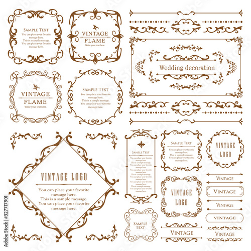 高級感のあるビンテージ調のフレームデザインセット 罫線 枠 ウエディング ビンテージ アンティーク