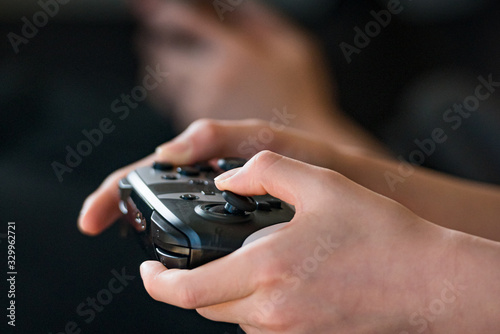 ゲームをする子供の手元 / ゲーム依存症のイメージ