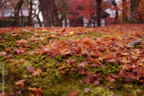 苔むした地面の上の落葉 秋・紅葉イメージ