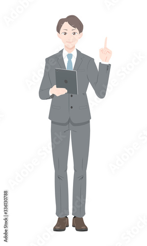 チェックポイント ビジネスマン スーツ 男性 タブレット 全身