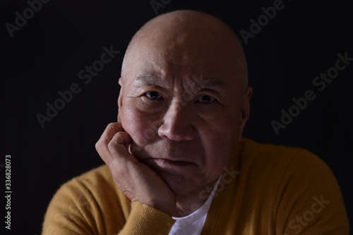 困った顔のシニア男性