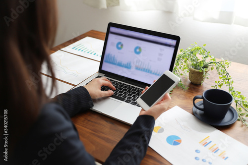 在宅勤務型テレワークでマーケティングの仕事をする女性