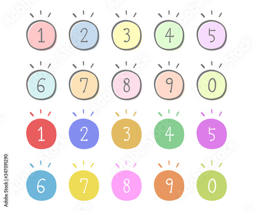手描きの数字のイラストのセット/シンプル/かわいい/