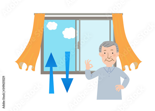 窓を開けて換気するとカーテンが揺れるベクターイラスト