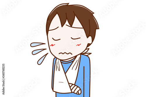 骨折して辛い少年