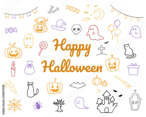 ハロウィーンの手書きのイラストのセット/かわいい/秋