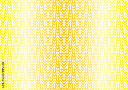 青海波の金色グラデーションの和柄パターン 線幅の変化する小さめの模様