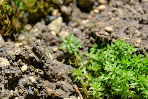 土に栄養を貰いながら進む苔