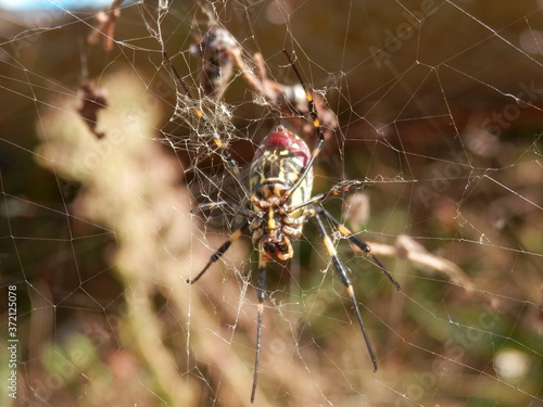 巣の中心に陣取るジョロウグモの腹側