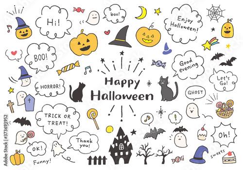 ハロウィンイラストと吹き出し素材のセット(カラー)