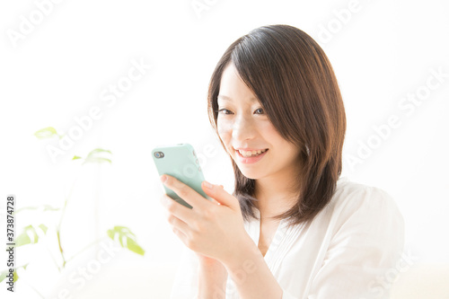 スマホを見る女性