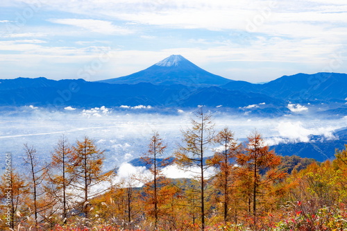 富士山と紅葉 山梨県韮崎市甘利山にて