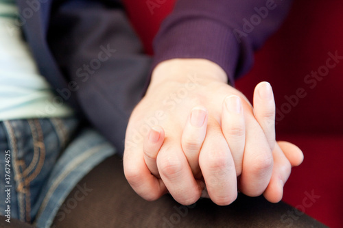 手を握るカップルの手元