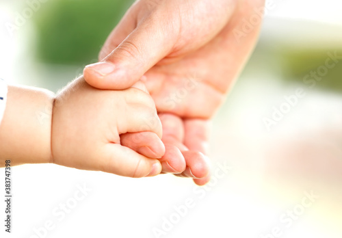 母親と赤ちゃんが手をつなぐ 親子の触れ合い
