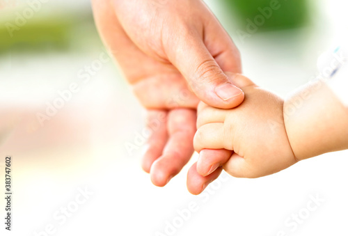 母親と赤ちゃんが手をつなぐ 親子の触れ合い