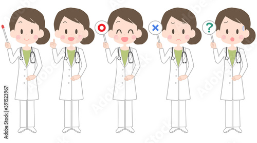 女性医師 ポインター サイン セット
