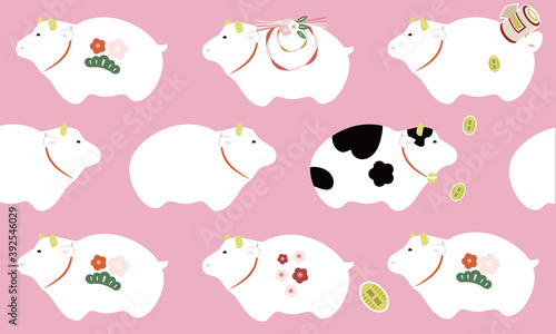 年賀状や背景素材にも使いやすい牛のかわいいピンクのイラストのシームレスパターン